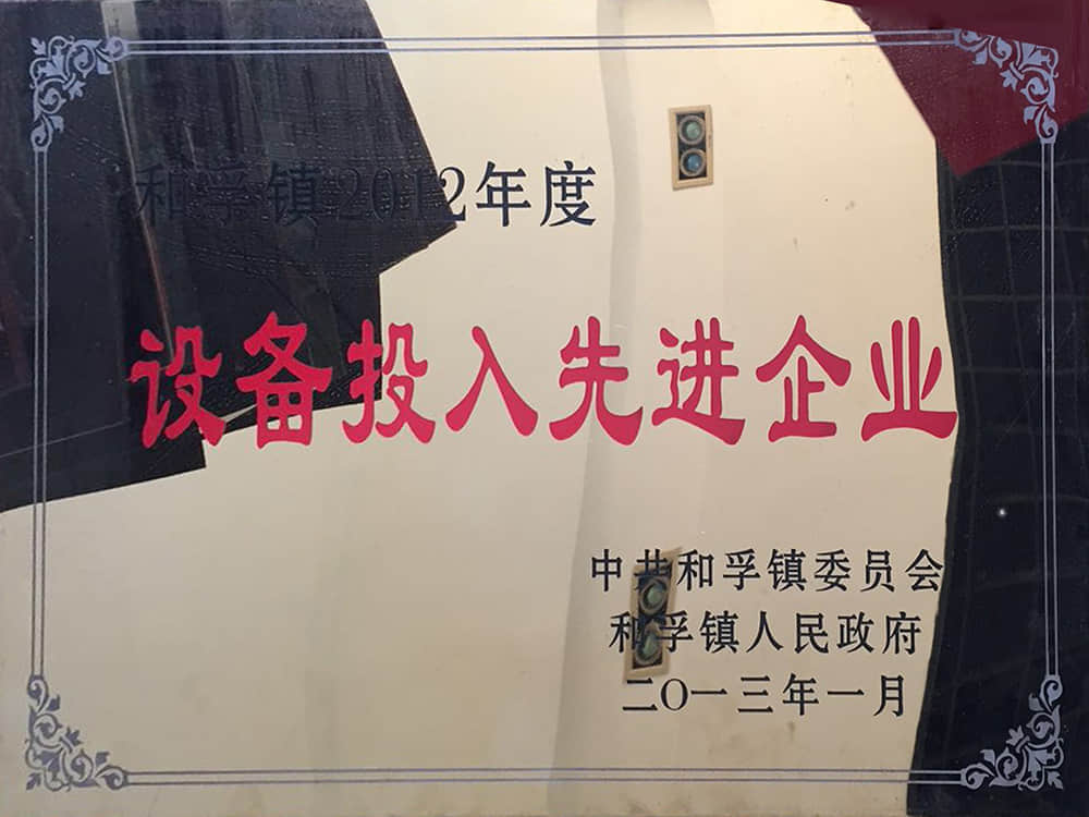 2012和孚鎮(zhèn)年度設(shè)備投入先進企業(yè)