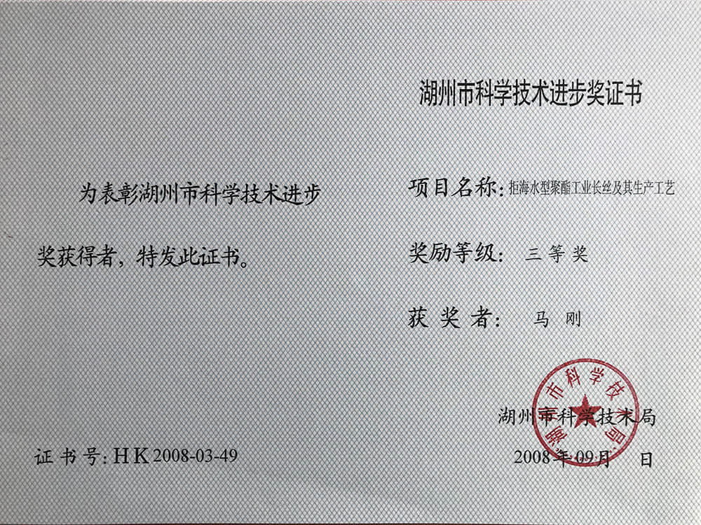 2008湖州市科技進步獎三等獎-馬剛
