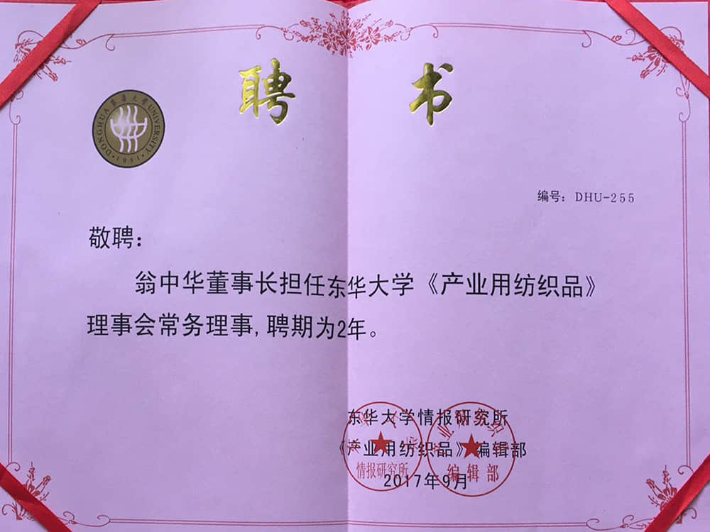 2017東華大學(xué)產(chǎn)業(yè)用紡織品理事會常務(wù)理事單位